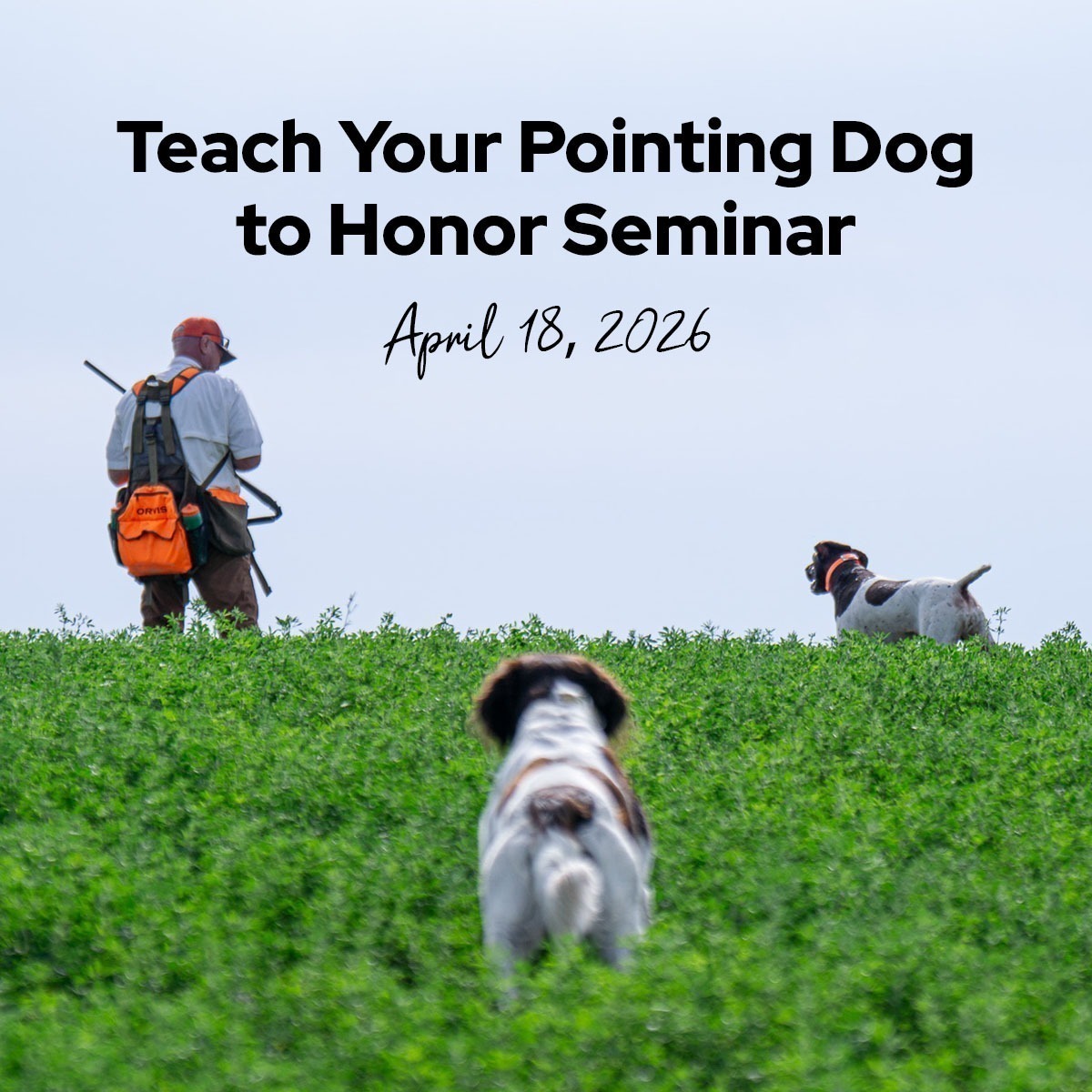Are you looking to run AKC Senior or Master hunting tests or field trials? Or be able to hunt your dog with other dogs and have them respect their bracemates? This seminar is intended for people who are looking to teach their dogs to honor. We will discuss the process of teaching your dog to honor and work multiple dogs through the beginning of this process. Working spots with dogs as well as auditing spots without dogs are available.
